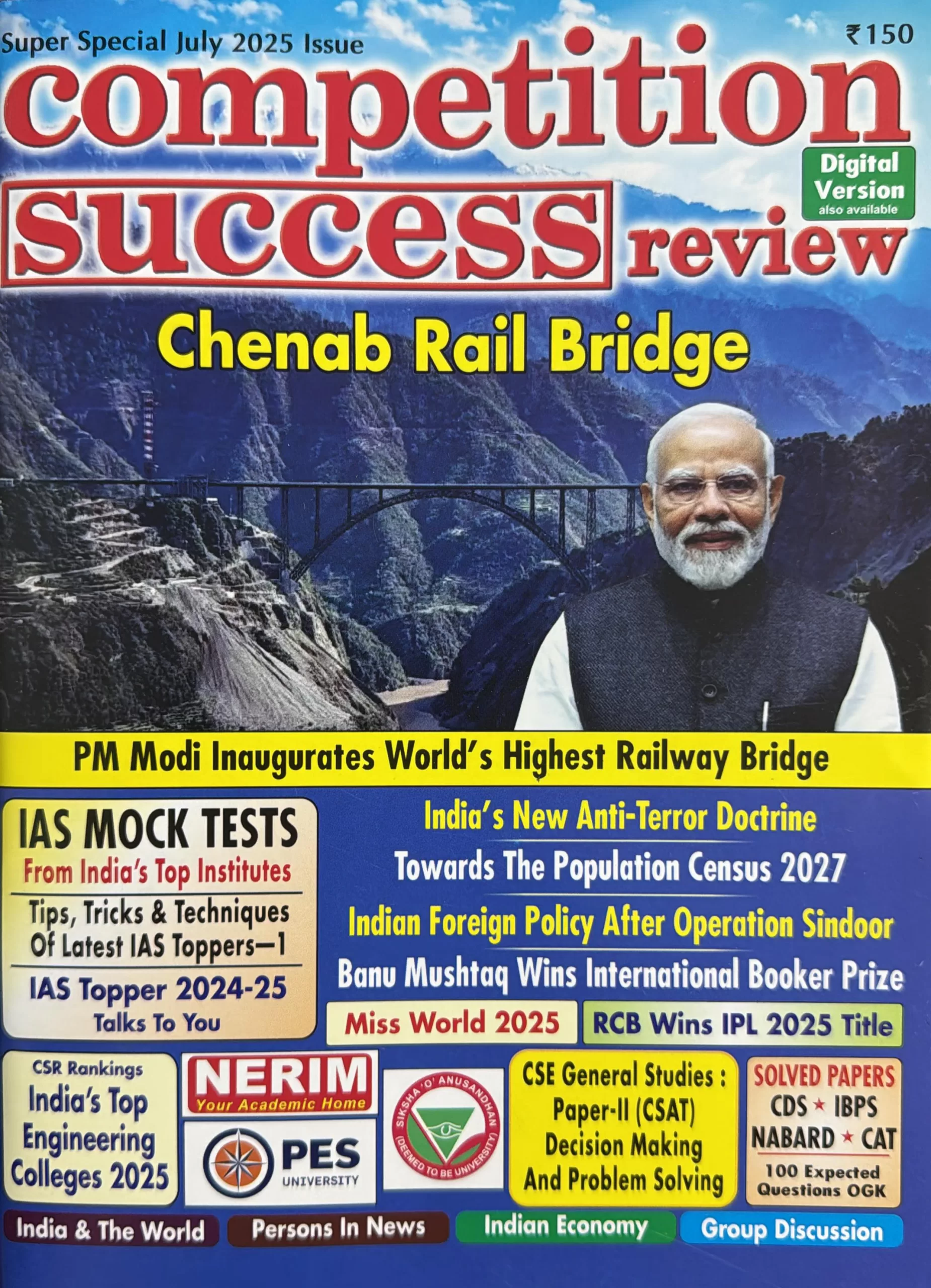 Competition Success Review Magazine July 2025 – Chenab Rail Bridge highlights the engineering marvel and strategic significance of the world’s highest railway bridge. This edition also features competitive exam content, GK updates, and interview tips for aspirants.