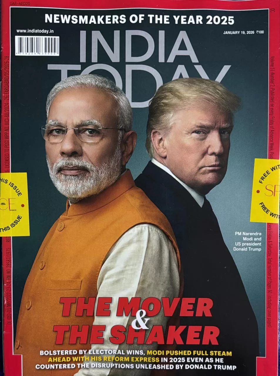 India Today – 19 January 2026 issue highlights the “Newsmakers of the Year 2025”, profiling key figures and events that shaped the year across politics, global affairs, space, society, and sport. The cover story focuses on Narendra Modi and Donald Trump as leading influencers of 2025, with comprehensive analysis of their impact and other standout newsmakers.