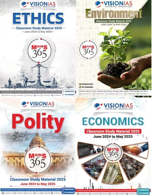 Vision IAS Mains 365 English Polity, Environment, Economics and Ethics 2025 Pack of 4 Photocopy B/W