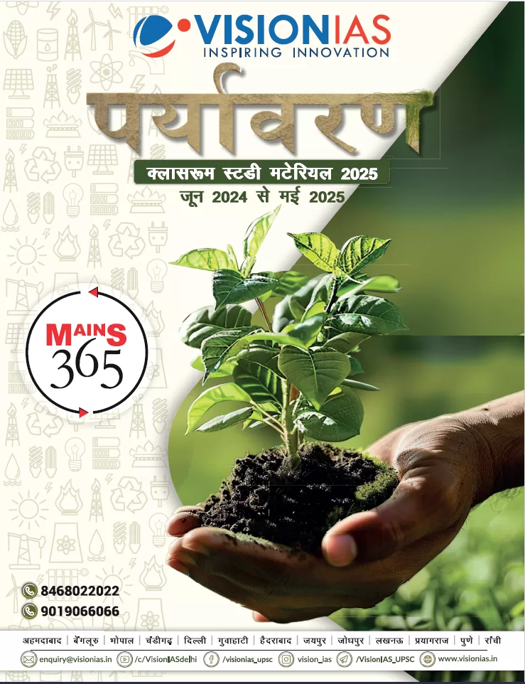 Vision IAS Mains 365 Hindi Paryavaran 2025 (Photocopy B/W – 146 Pages) में पर्यावरण, जलवायु परिवर्तन, सतत विकास और समसामयिक पर्यावरणीय मुद्दों का संक्षिप्त व विश्लेषणात्मक संकलन दिया गया है। यह यूपीएससी मुख्य परीक्षा 2025 के GS पेपर-3 की तैयारी के लिए उपयोगी सामग्री है।