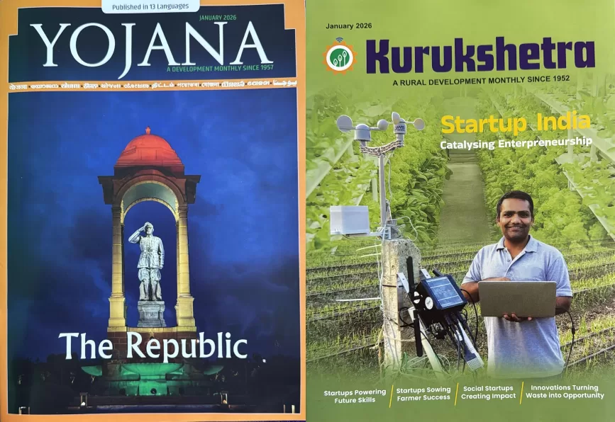 Yojana & Kurukshetra English Magazine January 2026 Combo – Startup India focuses on India’s growing startup ecosystem, highlighting entrepreneurship, innovation, MSME growth, policy support, funding mechanisms, skill development, and job creation. This combo issue explains government initiatives under Startup India, success stories, challenges faced by entrepreneurs, and the role of startups in inclusive and sustainable economic development. An essential read for UPSC, State PCS, SSC aspirants, students, policymakers, and readers interested in India’s development journey.
